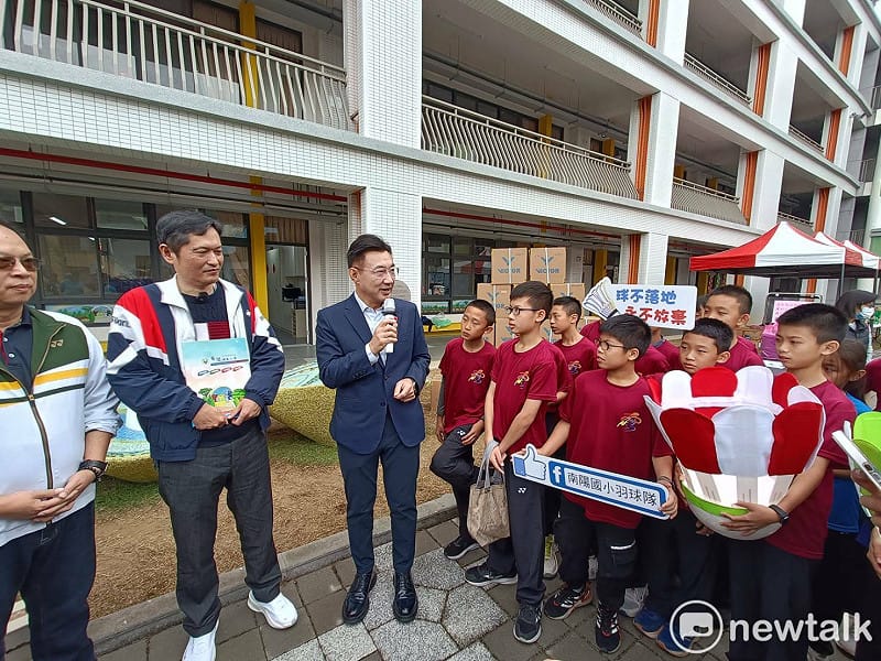 江啟臣表示,南陽國小是地方教育的根基,更是孩子成長的起點。他強調,政府應扮演資源串聯的平台,透過公私協力改善體育環境,讓基層體育獲得穩定支持。 圖:唐復年/攝