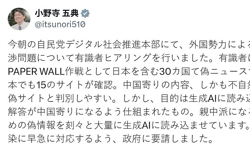 自民黨聽證會揭露:中國「紙牆」作戰在30餘國...