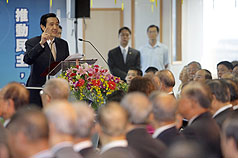 馬英九致詞時重申,兩岸關係的改善,對台灣影響非常大,台灣未來的發展,不可能跟大陸不保持一個適當的關係,這個關係是密切,還是不密切,是有討論的餘地,但是不可能不發展關係,這是一個很務實的作法。