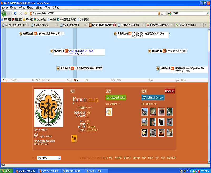 為加強宣導政府開放美國牛肉的政策,衛生署史無前例的在官網首頁,特別公佈一個「美國牛肉噗浪網址」,顯示衛生署想透過最近在台灣超流行的微網誌—噗浪(Plurk)跟民眾對話。前天這個噗浪才剛剛上線,今天一早,就被噗友發現,衛生署已封鎖噗浪,完全不開放噗友回應。