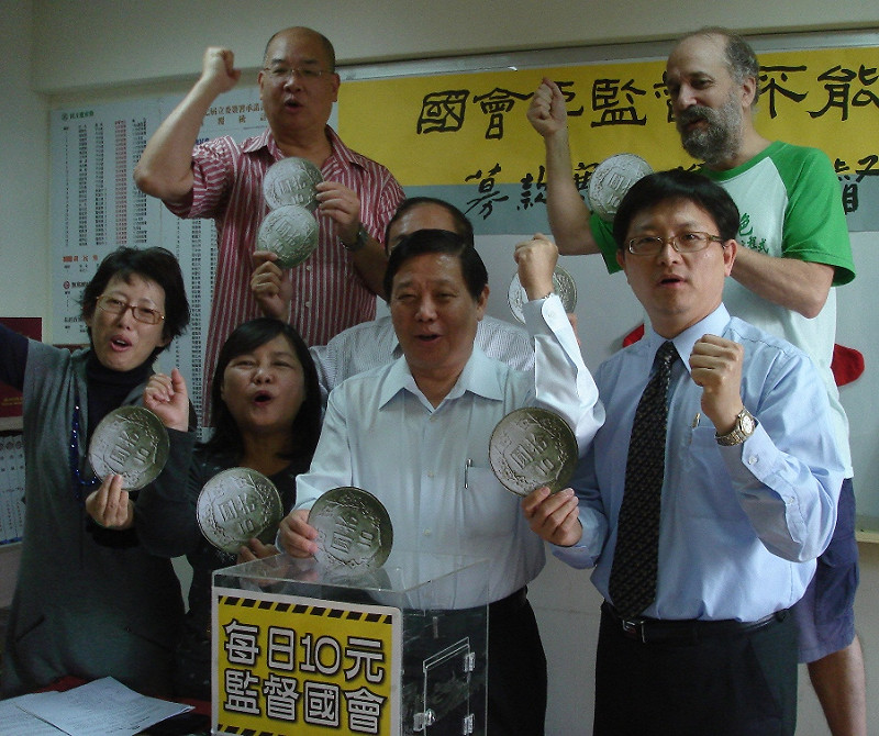 「國會要監督,不能沒有您!」景氣寒冬加上88風災捐款排擠效應,不少民間社團面臨募款困境,以監督立委為目的的公民監督國會聯盟(以下簡稱公督盟)同樣面臨即將斷炊的處境,今(13)日公督盟理事長顧忠華親自率多位民間團體領袖號召民眾「每日10元,監督國會」,前中研院院長李遠哲也響應加入捐款行列。