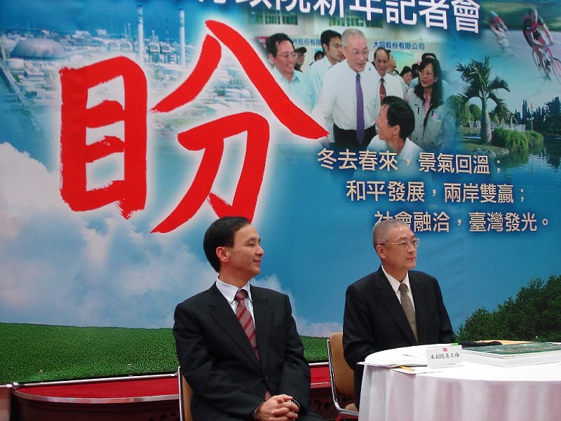 行政院今(8)日舉行新年記者會,行政院長吳敦義以民間選出的2009年代表字「盼」作為主題,提出新年三盼:「冬去春來、景氣回溫;和平發展、兩岸雙贏;社會融洽、台灣發光」。不過背景大型海報上的「盼」字,是總統馬英九元旦出席漢字文化節的墨寶,難免令人有「拍馬屁」的聯想。