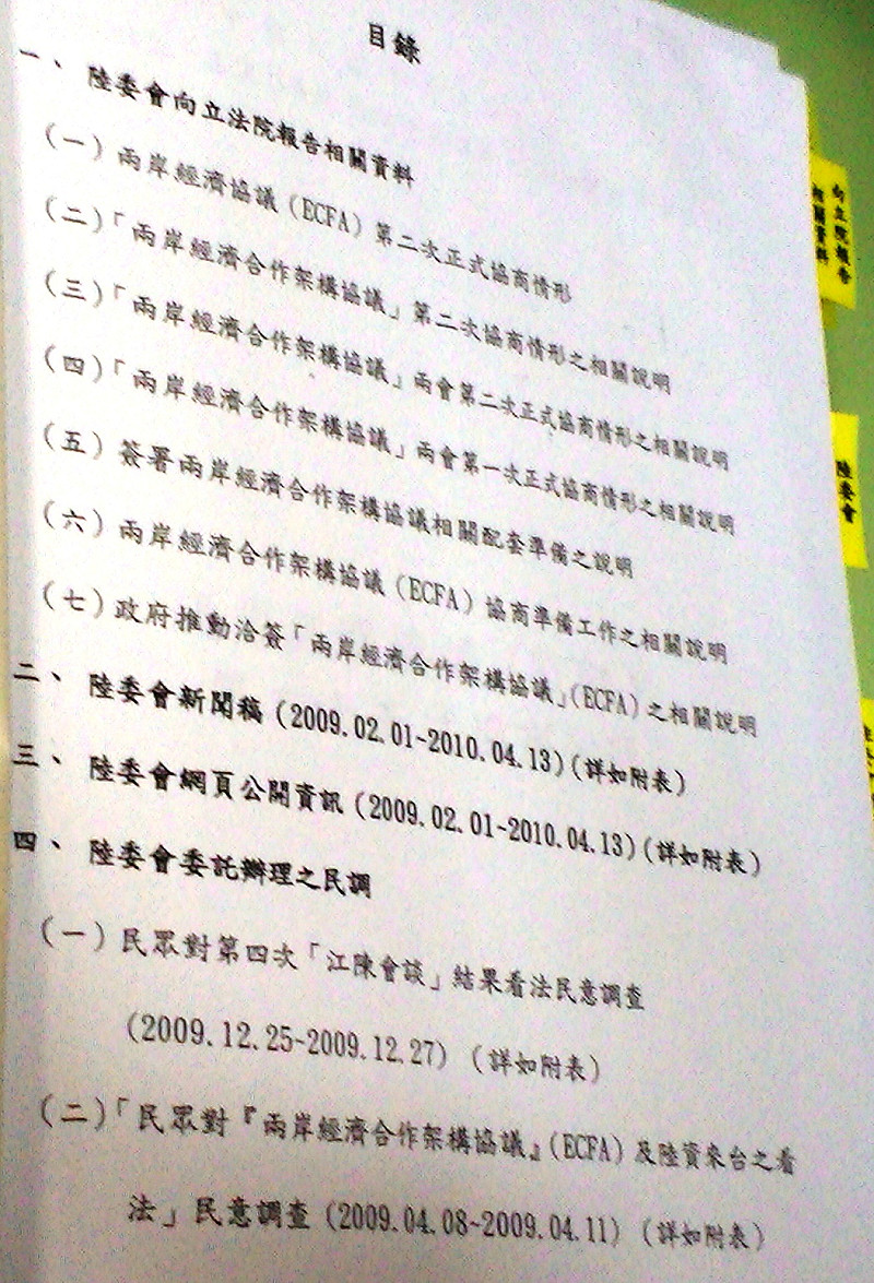 行政院送出的文件,是500多頁的單面印刷品,內容有一半都是已公開新聞稿,剩下的是過去陸委會和經濟部提供給立法院的院會報告、網站公開資訊和相關民調,沒有一項跟民進黨所提的需求有關。