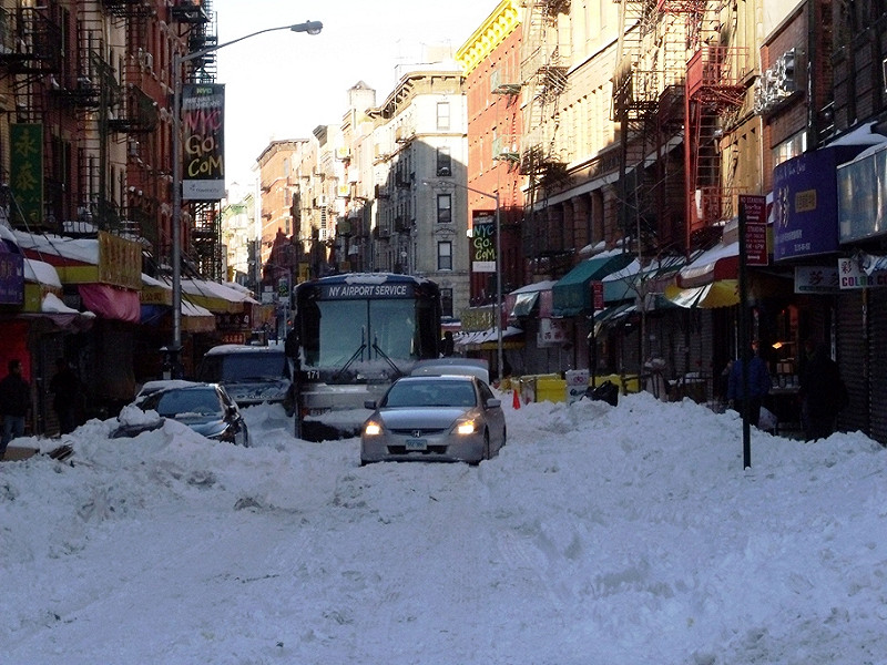 聖誕節隔天原本是紐約客們出門瘋狂大採購搶便宜的一天,但一場紐約市歷年來第六大的暴風雪,不只將所有紐約客的生活步調嚴重打亂,在大雪結束兩天後,還有許許多多次要道路上深達50公分的積雪完全未見市府清潔單位來清除,地鐵仍然有數條路線停駛和延班。