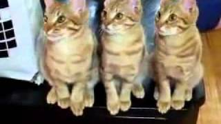 ,除了動作都相當的一致外,3隻小貓擺頭的快慢也都很有Tempo,彷彿是訓練好的一樣,