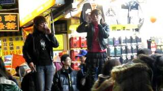 根據影片中得到的訊息,這家服飾店似乎正在週年慶大特價,但光是辦特價活動,可能也無法吸引多少顧客上門,於是業者決定祭出殺手鐧,那就是派出兩位搭配著生動手勢叫賣的小姐,整齊劃一的動作和令人莞爾的台詞,也吸引了遊客們的目光。