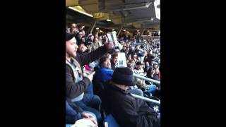 影片中,一位帶著漁夫帽的洋基球迷,竟然就在球賽還在進行時,沉沉睡去。而坐在他後面的球迷決定開他一個小玩笑,開始在這位打瞌睡的球迷的帽子上,疊起杯子來,且居然還讓他成功的疊起了3個杯子,讓現場觀眾拍手叫好。