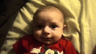 之前才有5個半月大的小嬰兒,當他聽到媽媽擤鼻涕的聲音時,總是會露出相當驚恐的表情,但隨即又開心大笑,讓網友戲稱「真是太可愛了」。最近網路上又出現另個才3個月大的男嬰,在媽媽逗弄下,顯然相當享受這種寵愛,但在聽到媽誇張的笑聲後,馬上變臉,成為驚恐的表情,到底這位媽媽的笑聲有多恐怖?就讓網友自己去判斷囉!