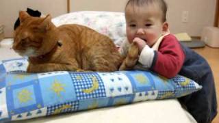 影片中,這個連話都還不會說的小嬰兒,看到搖來晃去的貓尾巴,就毫不遲疑的拿起來把玩。這個小嬰兒先是將貓尾巴拉來拉去,後來甚至是把貓尾巴放到嘴巴裡頭;而這個舉動似乎讓這隻寵物貓受到了驚嚇,警戒地馬上回頭,但牠在看見小嬰兒後就立刻冷靜了下來。