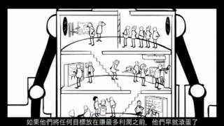 這部以卡通素描方式呈現的影片,首先就提到,只要是選舉將至,電視上就會充滿著各式各樣的競選廣告,其中當然也不乏候選人互相攻訐、毀謗的內容。而這部影片也說明了原因,「那是因為企業投入資金,試圖左右選舉」;換句話說,也就是民主已經失竊了,而小偷正是能夠以錢左右選舉的大企業。
