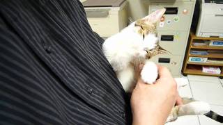 隨新聞所附的就是這隻幸福的貓咪,被主人抱著,邊吸腳趾頭邊入睡的可愛畫面。