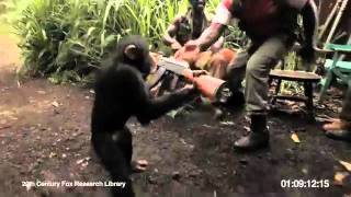 在這支影片中,眼見這群西非的黑皮膚的軍人,學著猴子的模樣取笑牠,有一名軍人還把手中的AK47交給這隻猴子,看牠會做出什麼舉動?另一名軍人則拿著另一把AK47對猴子逗著玩。