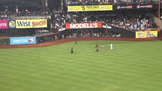 影片中這名紐約大都會隊(Mets)的球迷,違規闖入球場外野後,球場警衛見狀隨即上前試圖勸離這名球迷,但這名球迷不知是玩得還不夠盡興,還是以為自己是「全員逃走中」的參賽者,即使面對一群警衛,還是不慌不忙地左閃右閃、拔腿狂奔。但這名球迷囂張的行徑似乎惹惱了警衛,最後只好使出必殺「擒抱術」,才結束了這一分多鐘的球賽餘興節目。