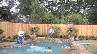 天氣愈來愈熱,氣溫屢屢刷新最高紀錄,這時整天泡在泳池裡一定是個消暑的好辦法。但若僅是乖乖的待在泳池中,恐怕無法滿足好動的青少年,而最近就有一群外國青少年決定在自家的泳池中找些樂子,那就是一邊玩水,一邊表演籃球特技。