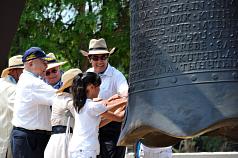 最後,馬英九指出,金門已經從兩軍的殺戮戰場,變成兩岸的和平大道,希望透過和平安詳的鐘聲,引領大家邁向和平的新世紀。今天除了在金門敲響和平鐘外,還有11個國家的19個鐘以及全台2百多個寺廟、學校的鐘響起,同步傳達和平的鐘聲。