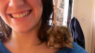 影片中,小貓在主人的左肩膀上雙眼緊閉,熟睡的臉看起來十分享受,但沒一會兒,這隻睡著的小貓便開始往後滑,頭都滑落到主人背上了卻還沒醒過來;最後在千鈞一髮之際,將頭抬起來,抓穩回到了主人肩膀上,但眼睛卻還是捨不得睜開。貪睡的樣子讓網友都叫:「實在驚險又可愛過了頭!」。