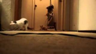 吸塵器雖然是人類日常生活中經常使用的家電用品,但對於小動物來說,卻可能是個發出巨大噪音可怕怪獸。影片中一群小貓圍繞在一台吸塵器附近攀爬、把玩,這時主人玩心大起,將吸塵器啟動,小貓被嚇得紛紛鳥獸散、落荒而逃,讓主人樂不可支。