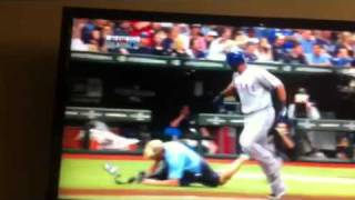 在這場美國職棒大聯盟德州遊騎兵(Rangers)與坦帕灣光芒(Rays)的比賽中,遊騎兵的貝爾崔(Adrian Beltre)共打出了3發陽春砲,創下大聯盟季後賽史上第6位單場3轟的記錄,而他的精彩表現似乎也震懾到負責捕捉精彩畫面的攝影師。
