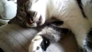 這隻在沙發上舒服地做起白日夢的貓咪,嘴巴因為熟睡而不時抽動,模樣惹人憐愛。接著不知道是夢到了什麼,身體不停扭動的牠,漸漸滑到沙發邊緣,最後竟然連頭帶身從空中重重跌落。