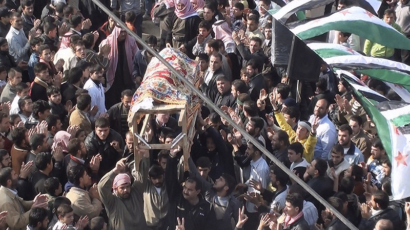 數萬名敘利亞人走上荷姆斯城(Homs)街頭集結抗議阿塞德(Bashar al-Assad)總統,懇求新抵達阿盟和平觀察團見證敘利亞人民之苦難。