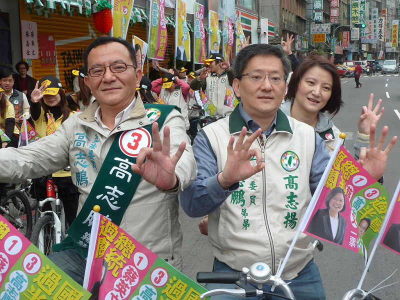 民進黨立委候選人高志鵬今(3)日在女大學生組成的「OK女孩」陪同下,進行單車掃街拜票的行程,希望能積極搶攻年輕與首投族的選票;高志鵬強調,期盼打造「活力三重」,藉著推動單車的活動,號召年輕人站出來、動起來,讓三重這個城市更有活力。