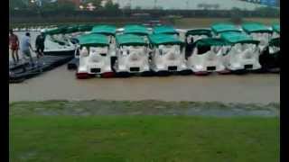 新北市從昨(11)日晚間就下起豪大雨,雨勢驚人,到了12日的清晨六點,碧潭水勢已經高漲到河岸邊,許多漂流木從山上往下游浮去。擔心碧潭河畔天鵝船也遭到大水沖走的老闆一家人,忙趕到河邊,一起努力用繩子將連成整片的天鵝船,費力的往河岸拉近,宛如是台灣版的拉縴畫面。
