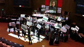影片內容為國民黨立委今天下午5時30分,趕在會議結束前,進議場開始發動「口號」攻勢。