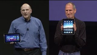 微軟在18日推出「Surface」,由微軟CEO巴爾默(Steve Ballmer)主持開場,這段影片也馬上被網友拿來與蘋果前CEO賈伯斯(Steven Jobs)比較,影片中,賈伯斯說:「iPad真的很輕薄」,微軟Surface團隊的人員則說,「Surface超輕薄」;接下來兩人皆描述了重量、尺吋等細節,並且都介紹了連接平板電腦的特殊鍵盤。