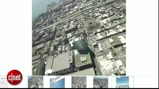 布林隨即宣布,3名工作人員已戴好Google眼鏡,準備從飛艇上跳傘,再降落至Moscone中心的樓頂上。透過即時傳送的影像,現場觀眾可看到跳傘的所有經過。這段十分特殊的眼鏡實地示範,也讓許多觀看影片的人精神一振,紛紛稱讚這是他們所見過最酷的產品示範。