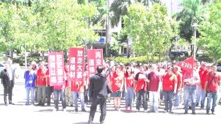 而今天由於NCC審議旺中案,NCC門口有眾多團體前來抗議,東森得意購也有訴求表達,東森得意購代表身穿紅衣,舉起巨大標語招牌寫著「放走大富這條豺,再來旺旺這條狼,茫茫蒼生情何以堪」,以表達其抗議之意。