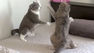 影片為日本網友拍攝,自家2隻貓咪的「決鬥」過程。