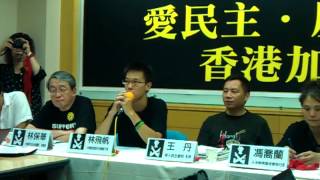 由華人民主書院舉辦的這項記者會,除了台灣各界人士外,現場並有香港反國民教育科大聯盟發言人葉寶琳和高中生學民思潮的召集人黃之鋒透過香港進行連線視訊,報告目前最新的情況。