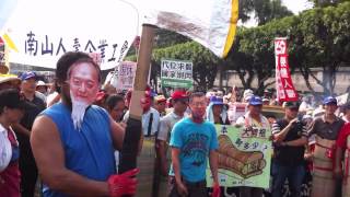 影片內容為勞工團體在凱道前劈棺、燒冥紙蓮花座、拋撒金銀紙的畫面。