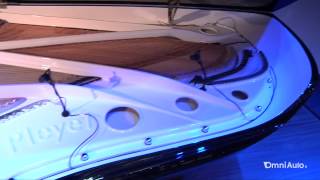 除了一部分是採用統的木製,這部三角鋼琴的框架真的是鋼製的,琴蓋和腳架的材質則是碳纖維。