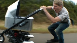 英國男子柯林(Colin Furze)喜歡改裝摩托車來破紀錄,當了爸爸之後更瘋狂,把嬰兒推車也裝上引擎,堅信時速可以接近50英里,約合80公里,都可以上高速公路了。