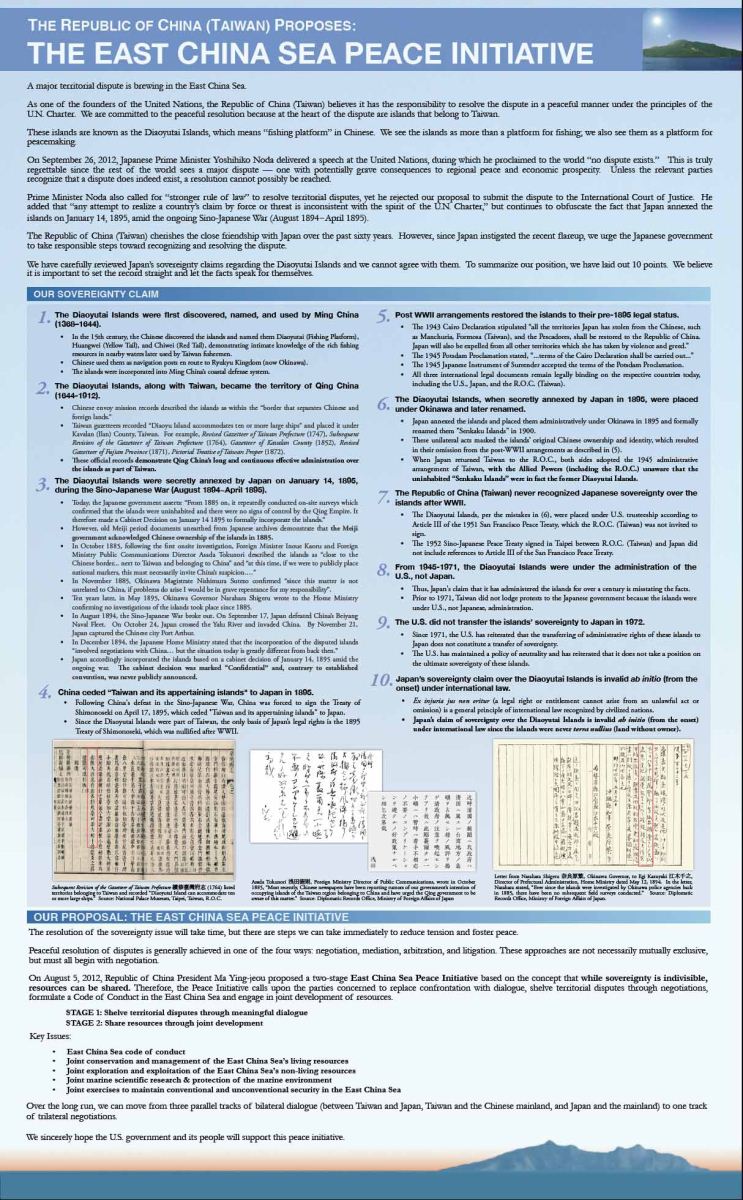 根據時事通信社報導,日本駐美大使館向刊登我國擁有釣魚台主權廣告的華盛頓郵報、紐約時報、華爾街日報、洛杉磯時報表示抗議,指「單方面刊登了違反事實的內容,非常遺憾」。