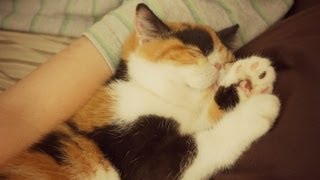 家貓正在瞇眼熟睡,突然開始左右手輪流抓握,似乎在夢中抓住了什麼。動作暫歇,飼主伸指觸碰,愛貓立刻張開手掌,握住飼主的手指,配上祥和睡姿,畫面十分溫馨。這支影片被po上網後,被網友封為「沉睡的招財貓」。