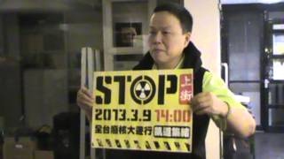 全台廢核大遊行將於3月9日展開,曾執導電視劇「波麗士大人」、電影「酷馬」的導演王小棣手持「廢核大遊行」看板的宣傳影片昨(27)日晚間在Youtube公布,她說,希望大家在3月9號都來參加遊行,她還語氣激動地說,「國家是我們自己的!」呼籲民眾踴躍參與廢核行動。