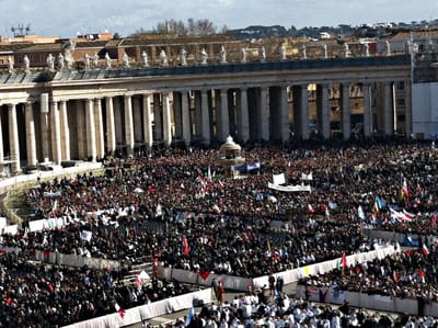 大批群眾一早就湧入聖伯多祿廣場,見證這場以傳承數百年儀式進行的難得一見教宗就職大典。