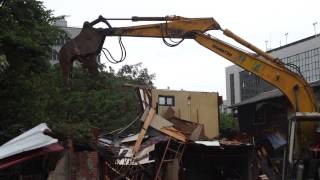 下午2點20分左右,怪手先拆除1間原定21日拆毀的空屋,接著拆毀今日計畫拆除的2間住家;自救會成員則在3點之前,陸續收拾現場,將物資與設備運走,留下警方、工程人員與部分媒體、民眾,現場氣氛平靜。