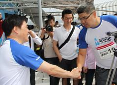 連勝文表示,棒次是活動單位的安排,並沒有交棒的想像。每年參加101登高賽的人,國內選手有藍有綠,國外選手中甚至有民主黨或共和黨員參加,運動比賽最吸引人之處就是它是開放的平台,全世界各地的人都可來此平台競爭,這都和政治無關。