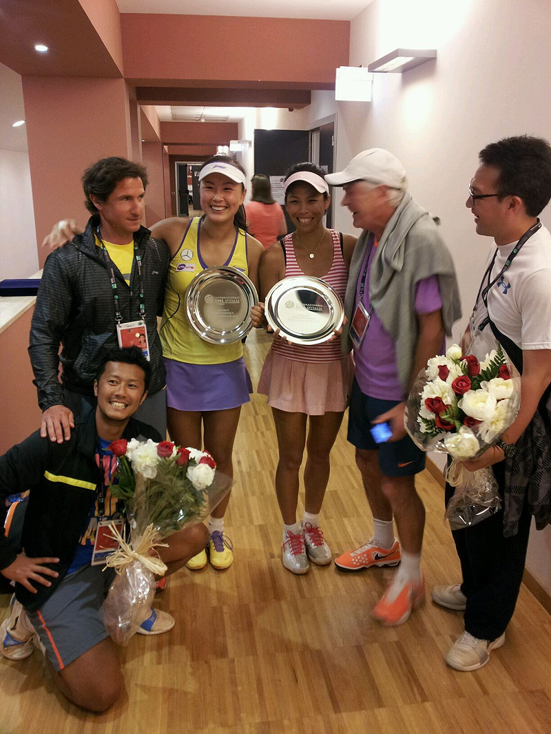 台灣女子網球一姐謝淑薇與中國彭帥搭檔的女子雙人組,昨(19)日在羅馬網賽女子雙打項目,擊敗義大利頭號種子艾拉妮(Sara Errani)和文琪(Roberta Vinci),拿走金盃。這也2009年兩人拿下羅馬網賽冠金後,第二度在這項比賽封后。