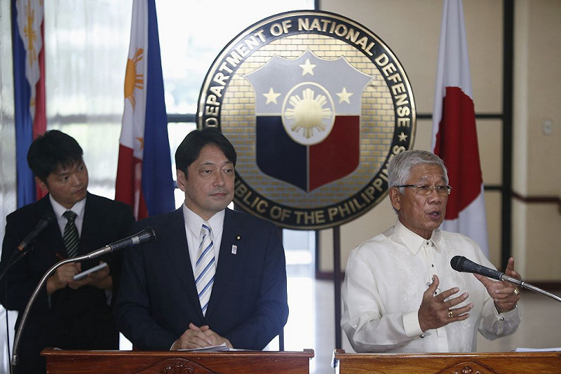 日本防衛大臣小野寺五典和菲律賓國防部長蓋茲敏(Voltaire Gazmin)今天在菲律賓國防部進行了1小時多的會議。會後,小野寺向媒體表示,日菲兩國「同意進一步加強偏遠島嶼的防衛合作,以及領土、領海和海上利益的保護」。