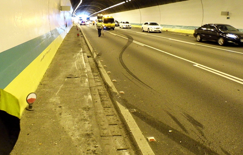 上午8時30分左右,南下北二高新店隧道內有一輛車號BQ─659號的工程水箱車,因為爆胎,導致車輛翻覆在新店隧道內,司機在爆胎當時可能猛踩剎車,在地上留下長長50公尺歪曲的剎車痕跡,所幸旁邊行車閃避得及,沒有造成更大災難,司機僅受輕傷是不幸之大幸。