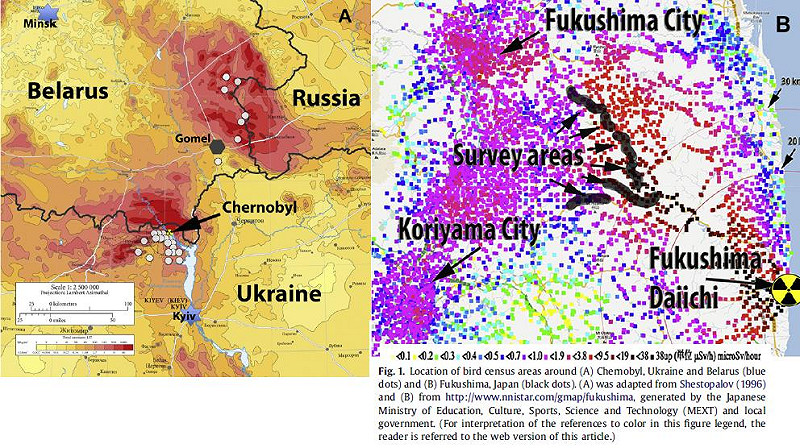 根據日本共同通信社9日報導,國際分子生物學與演化協會(Society for Molecular Biology and Evolution,SMBE)的學術年會中,美國南卡羅來納大學的穆索(Timothy Mousseau)教授報告時表示,1986年車諾比核災事故發生後,家燕等鳥類的羽毛有一部分開始變白;除此之外,體內還發生腫瘤等異常現象。