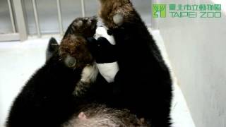 影片為台北市立動物園所拍攝,大貓熊圓圓與圓仔的「分身」布偶「仿仔」的互動狀況。