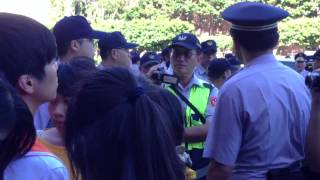 至於被警方認定為首謀的學生何友倫,由幾名夥伴陪伴,與警方僵持在中庭,更拒絕被盤查身分。但不到15分鐘內,何友倫仍被警察帶往仁愛路派出所。驅離過程中,中正一分局長方仰寧更不斷訕笑他「眾星拱月,不得了!」身旁的警員也發出笑聲。