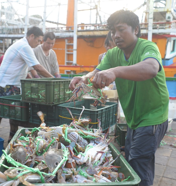 萬里蟹包含花蟹、三點蟹與石蟳3大野生海蟹品種,目前時節捕獲的萬里蟹,以花蟹及三點蟹為主,均由萬里漁夫自新北市外海的「西北漁場」海域捕得;由於萬里蟹無法離水存活,因此捕蟹船在靠港後,會將貯存在漁船活水艙中的螃蟹,依照品種來分類,再一簍簍倒在碼頭上的分貨盤,進行尺寸及規格挑選後,立即裝箱送上水車,配送到各大餐廳飯店及漁市攤,無法進行漁港邊零售。