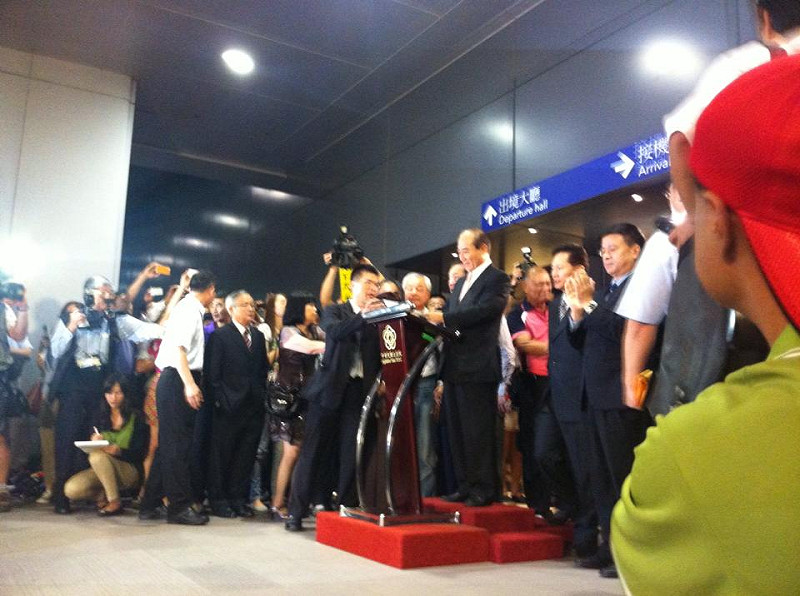 身陷關說案風暴的立法院長王金平今(10)晚7點32分搭機抵達桃園機場,並於8點左右,在2千名的接機鄉親「加油」聲中,發表口頭聲明,在接受媒體提問如果受到明天考紀會開鍘遭開除黨籍,是否可能組第三勢力?王金平說,「我一直對我的黨最真心也最忠貞,對我的黨參與、奉獻、努力,始終如一,會一直這樣下去」。