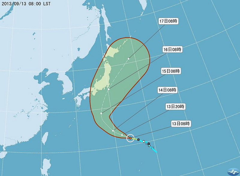 今年第18號颱風萬宜(國際命名:MAN-YI)於今(13)日凌晨2時形成,目前中心位置位於台灣東方約2500公里的海面上,以每小時22公里速度,向西北西轉西北,即日本方向進行。氣象局預測,15、16日是轉向的關鍵期,目前暫時不影響台灣。